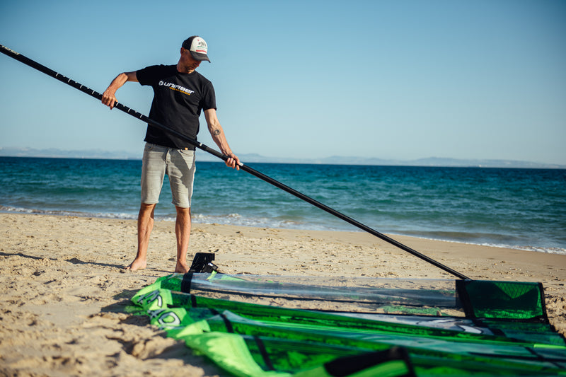 All Unifiber masts use an integrated ferrule system. Unlike conventional masts where a ferrule is glued in after cutting the mast in half, Unifiber constructs the ferrule during production of the bottom section using prepreg material on an extra-tapered mandrel. A diamond grinding machine ensures a perfect fit. This means no kink at the joint, no bend curve disruption, and a stronger connection. All ferrules are identical across sizes, curves, and carbon content -- if a section breaks, you only need to replace that part. You can even mix tops and bases from different ranges.