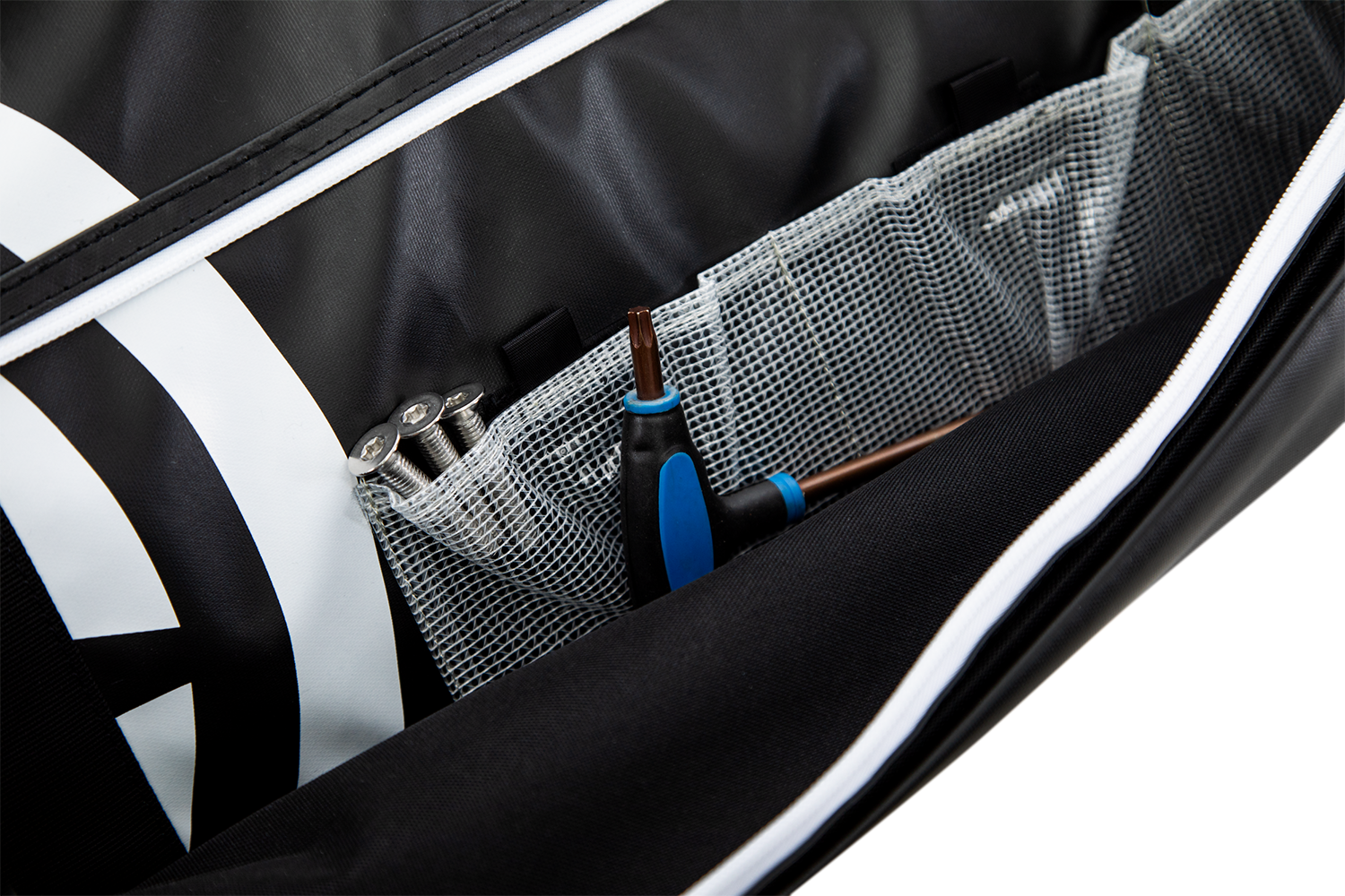 Inside, you’ll find tailored compartments to secure up to 3 front wings, 2 rear wings, a mast, and a fuselage—plus extra space for tools and spare parts. A removable velcro wallet keeps your screws and hardware organized and easy to grab during rig-up.