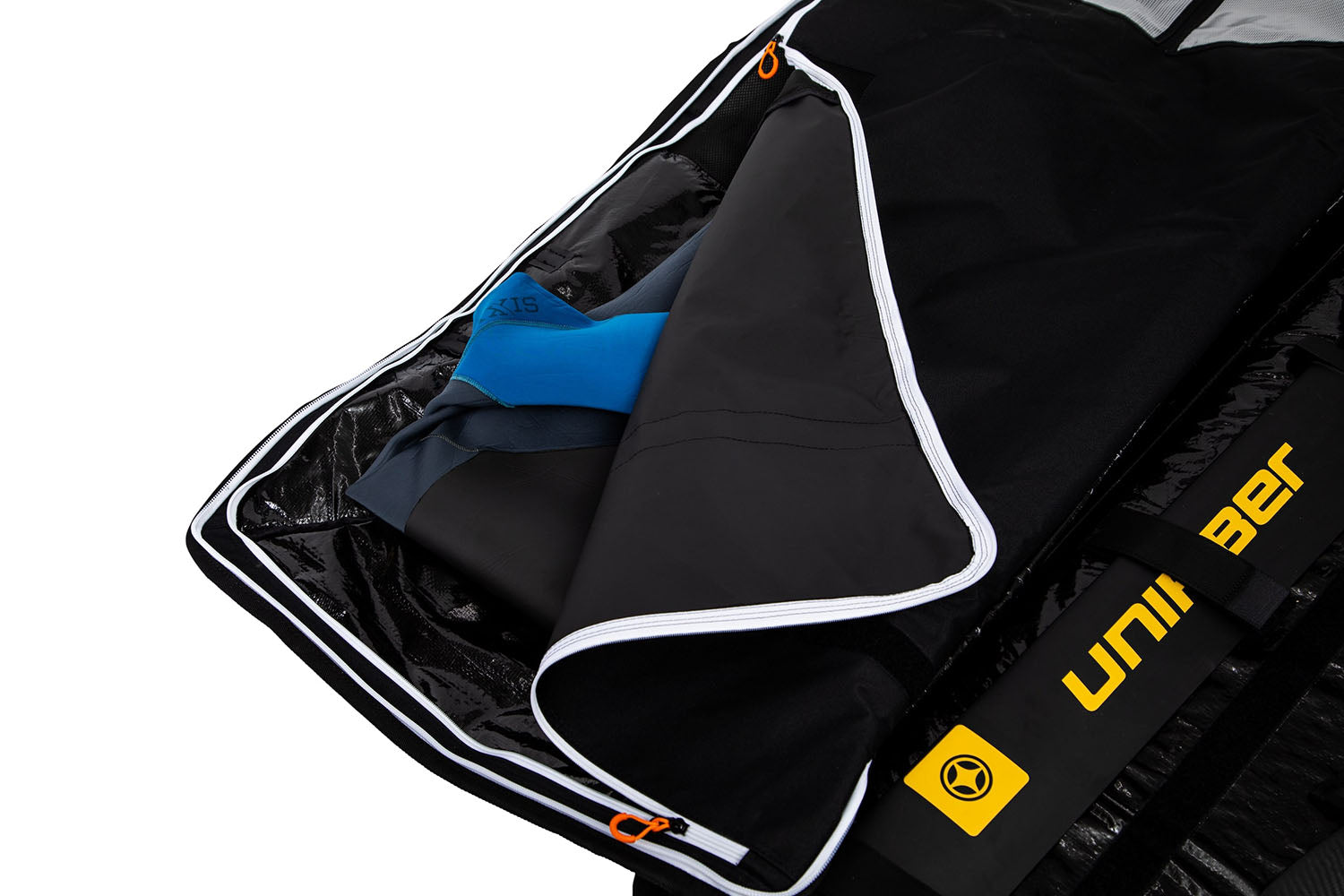 This isn’t just a board bag – it’s your mobile wingfoil basecamp. With room for your board, full hydrofoil, two wings, wetsuit, helmet, and accessories, it takes the stress out of transport and lets you focus on the fun ahead.