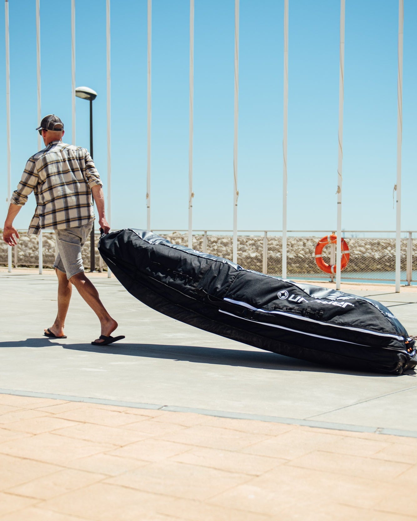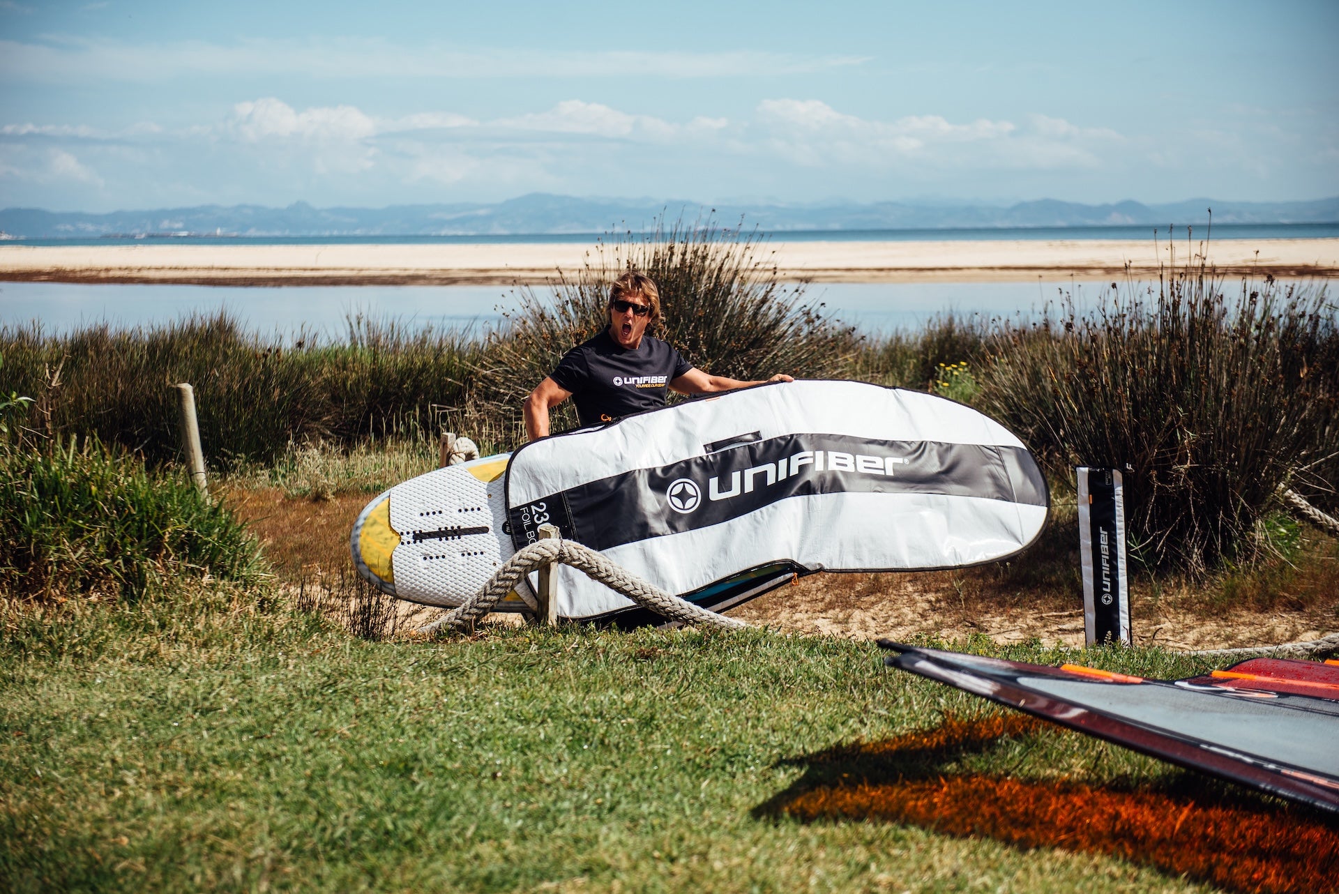 We designed it with a split-tail fin slot so you don’t waste time unscrewing your setup after every session. Just slide your board straight in, foil and all. The clever zipper placement ensures no scratching when storing upright, and a zip-closed tool pocket keeps screws and tools right where you need them.