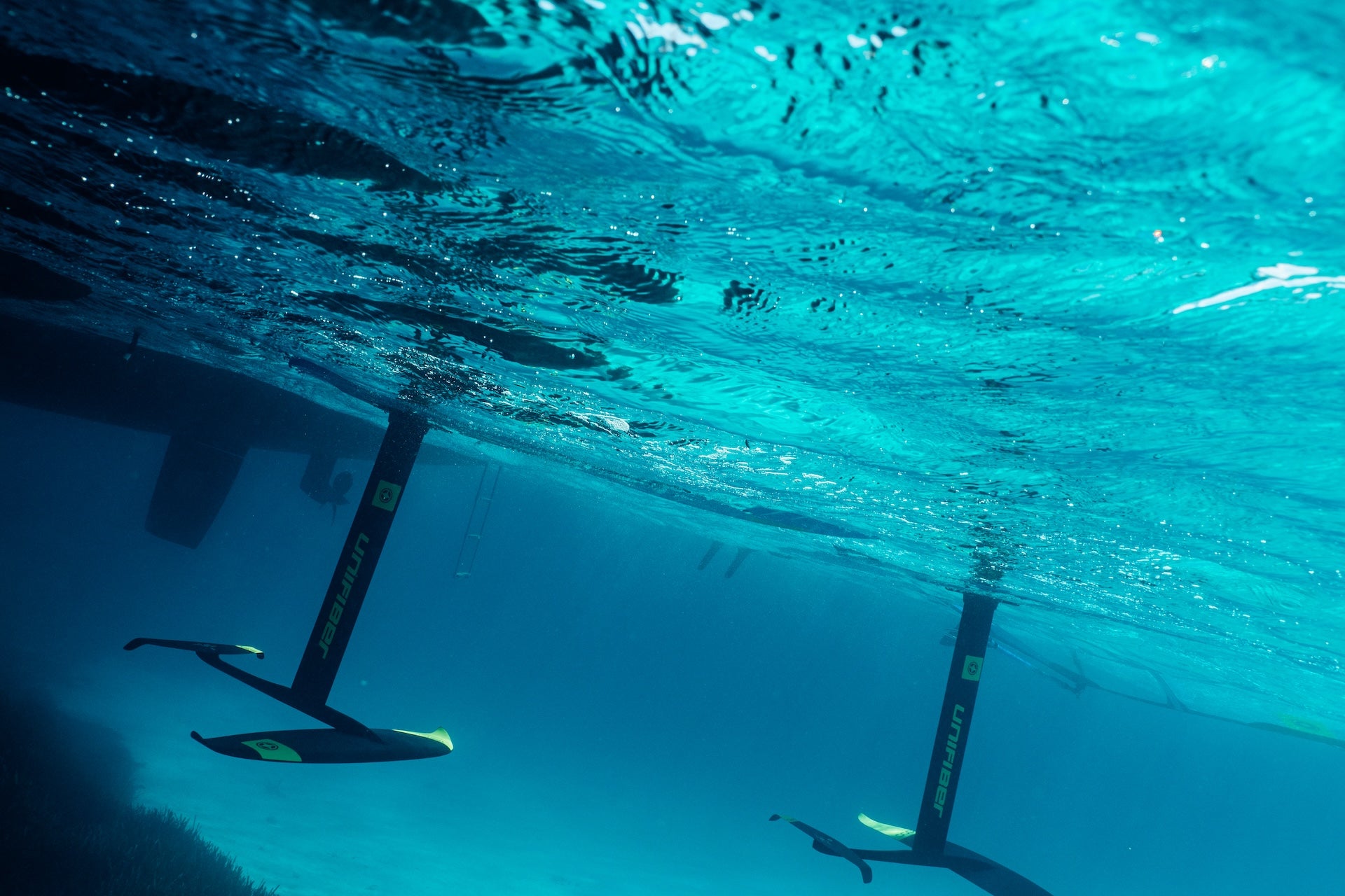 The Navigator Foil works excellently with our Unifiber foil boards, which feature reinforced mounting areas and balanced volume distribution designed specifically for foiling.
