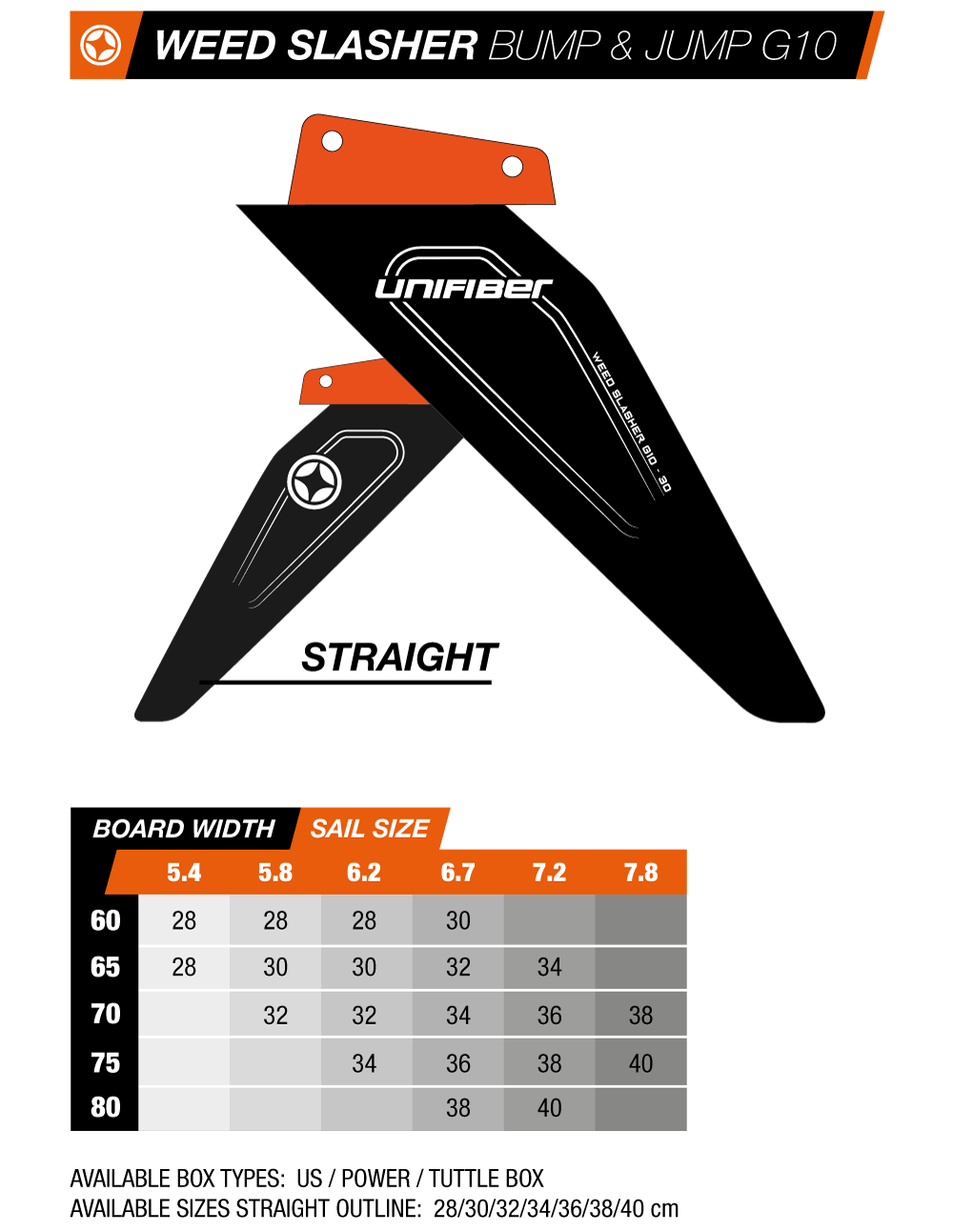 | Size (cm) | Fin Area (cm²) | Weight - Power Box | Weight - Tuttle Box |
